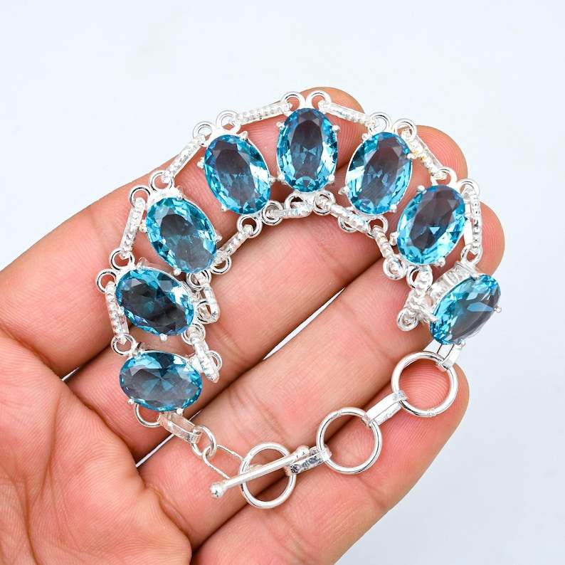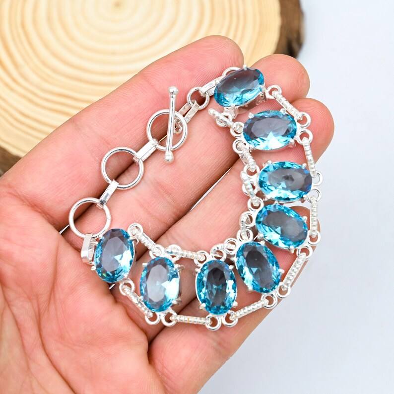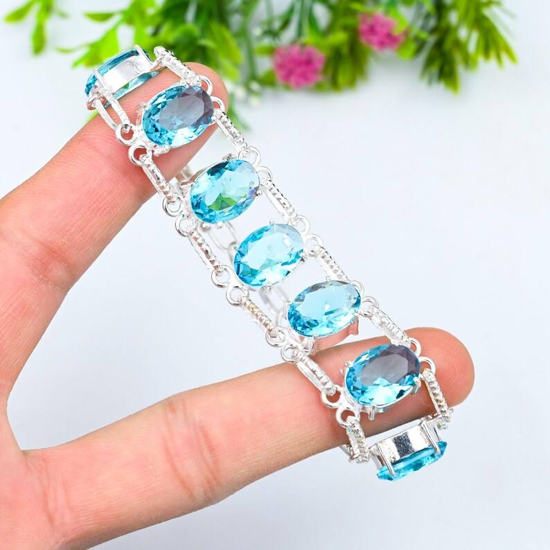 กำไลข้อมือสำหรับผู้หญิงสามารถปรับขนาดได้อัญมณีรูปไข่สีฟ้าอม925หรูหรา