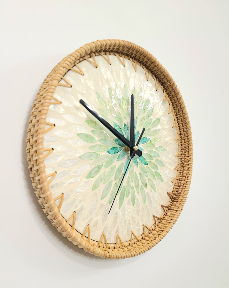 นาฬิกาแขวนผนังหวายหวายมุกธรรมชาติดีไซน์หรูหราสำหรับตกแต่งบ้านทำจากเวียดนาม