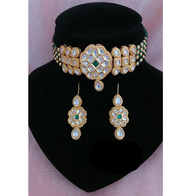 ชุดโช้คเกอร์และต่างหูโทนสีทองหรูหราแบบดั้งเดิมชุดประดับด้วยหินเพทายและไข่มุกสำหรับใส่ในงานแต่งงาน