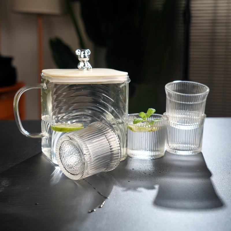 ชุดกาต้มน้ำแก้วใส5ชิ้นเหยือกแก้วทนความร้อน