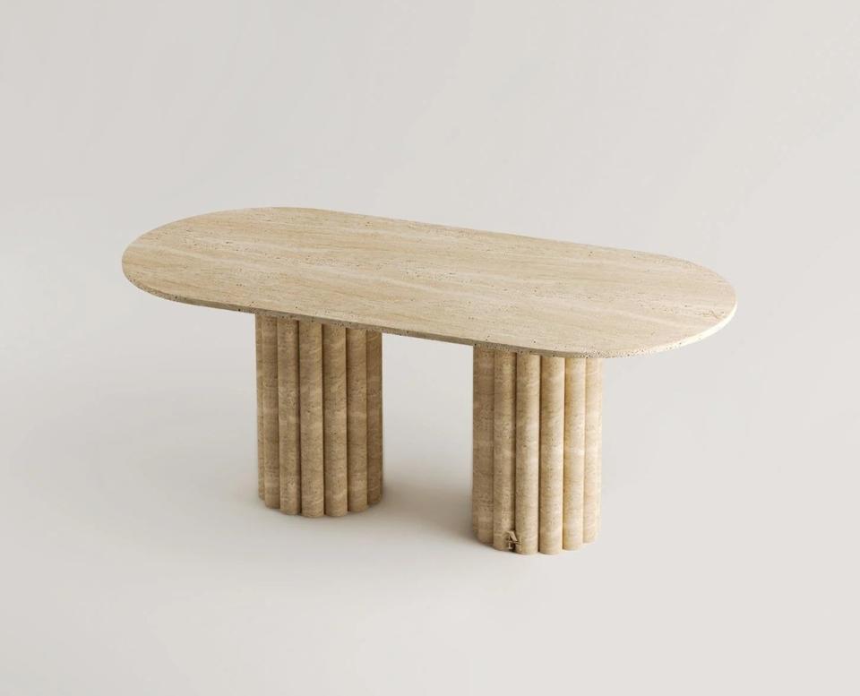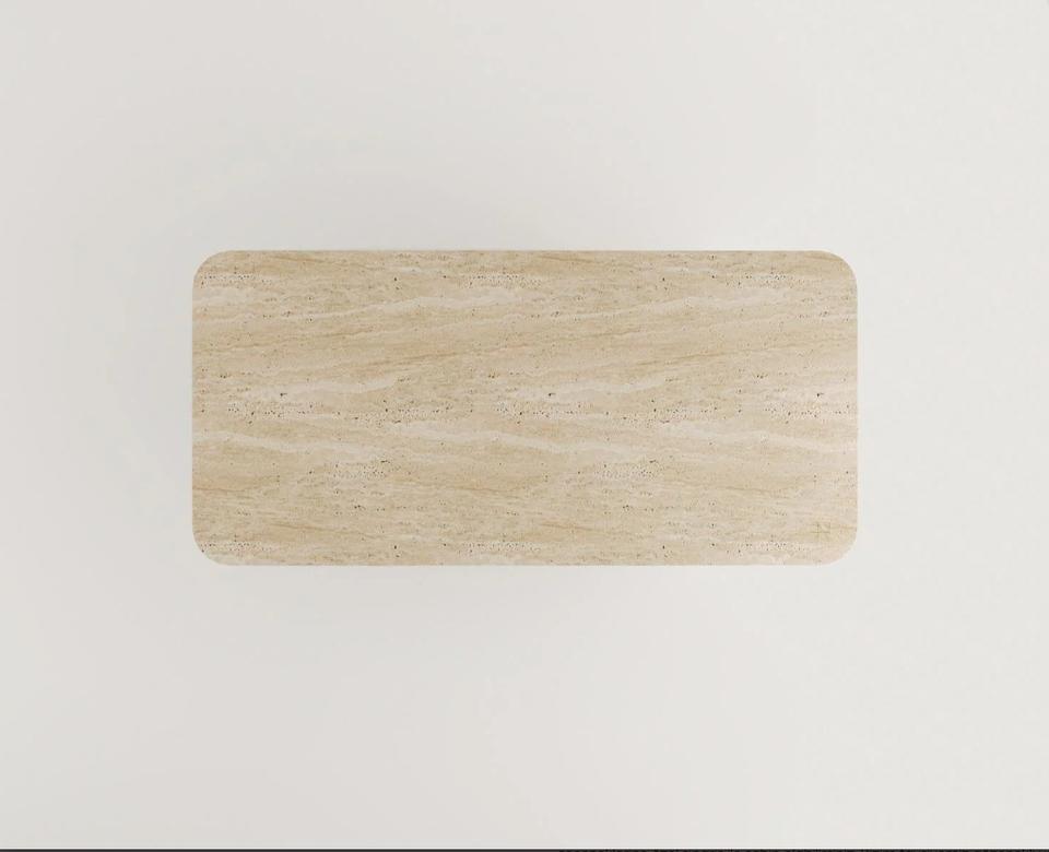 Elegant Travertine and Glass Coffee Table with Sculpted Stone Bases Modern Minimalist Design for Luxury Living Spaces