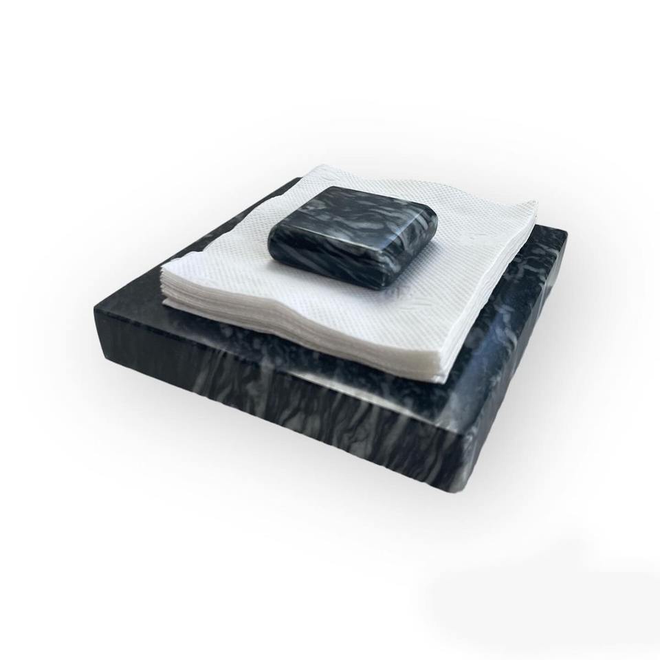 ที่ใส่กระดาษทิชชู่ลายหินอ่อนสีดำแนวตั้งหรูหราอุปกรณ์จัดระเบียบทิชชู่หินทรงสี่เหลี่ยมผืนผ้าทันสมัยตกแต่งโต๊ะบาร์และร้านอาหาร
