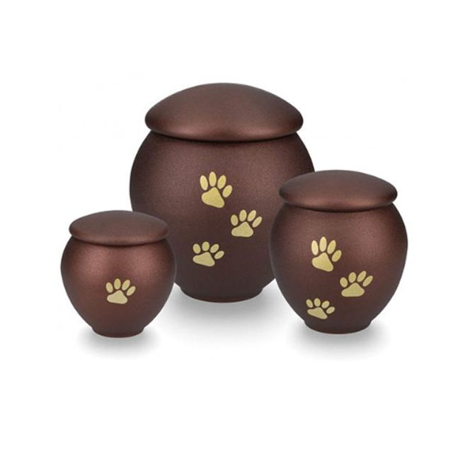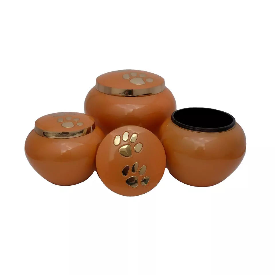 โกศหรูหราสำหรับสัตว์เลี้ยงขี้เถ้าอุ้งเท้าพิมพ์โกศสำหรับสัตว์โลหะขนาดปรับแต่งอุปกรณ์งานศพขายส่ง