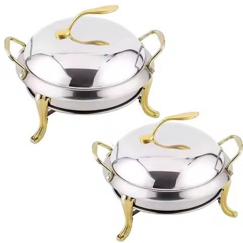 หม้อไฟโลหะดีไซน์หรูหรา ทนทาน พร้อมฉนวนกันความร้อน สำหรับเสิร์ฟอาหาร