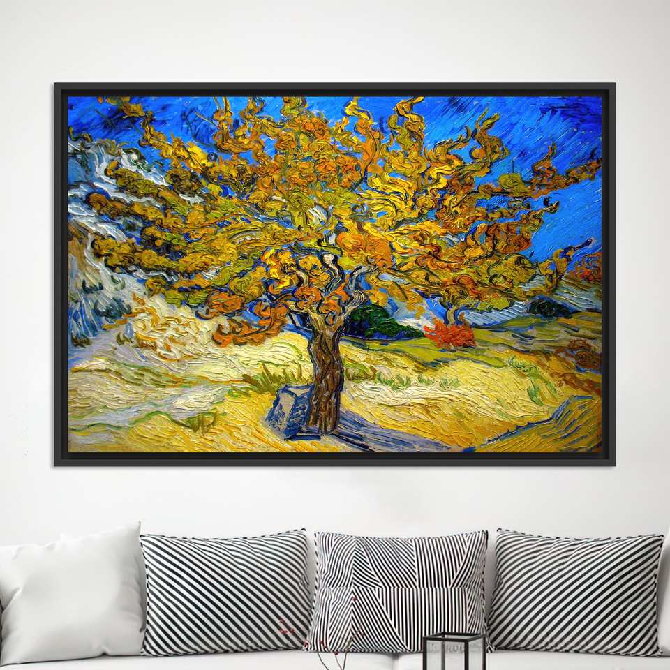 ภาพพิมพ์ต้นหม่อนแวนโก๊ะสุดหรู: งานศิลปะบนผ้าใบพิมพ์ลายพรีเมียม พร้อมกรอบสีดำ