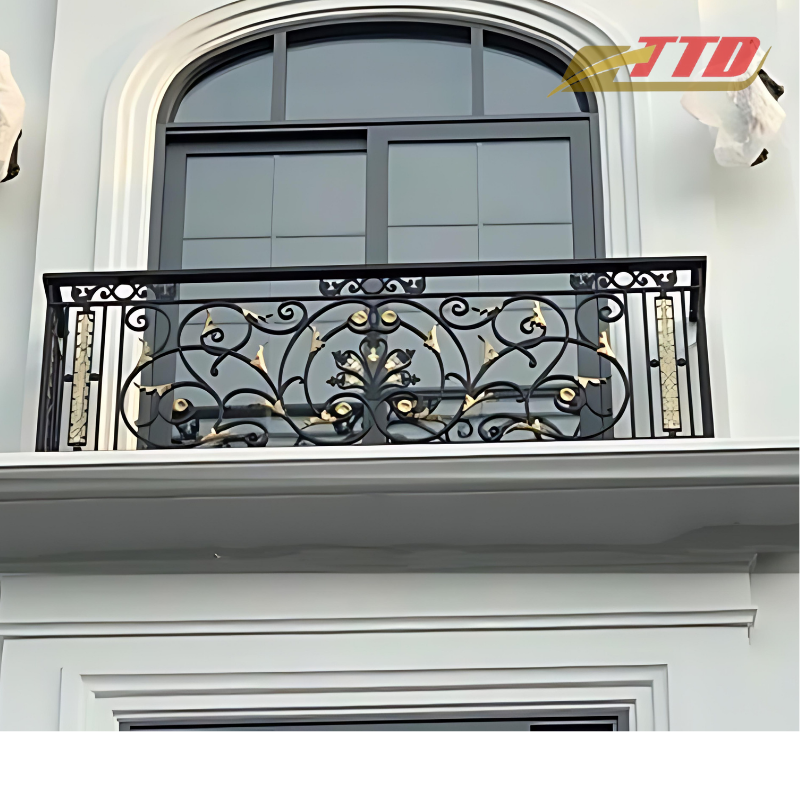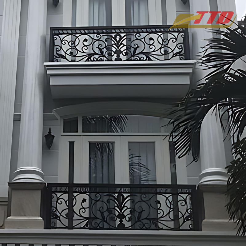 ราวระเบียงเหล็กเวียดนามอันหรูหราพร้อมรูปใบไม้และเส้นโค้งแบบคลาสสิกเพื่อมรดกและสถาปัตยกรรมที่ทันสมัย