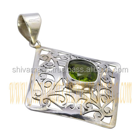 จี้พลอยเพอริดอทสีเขียววินเทจสุดหรูทำด้วยมือ925เงินสเตอลิงมรกตตัดสีเขียวมรกตห้อยจี้เครื่องประดับโดยตรง