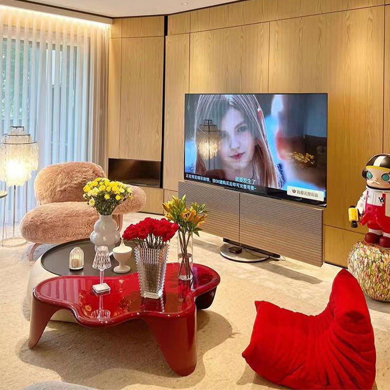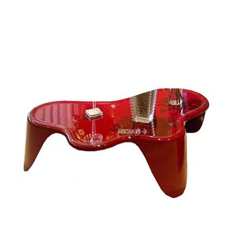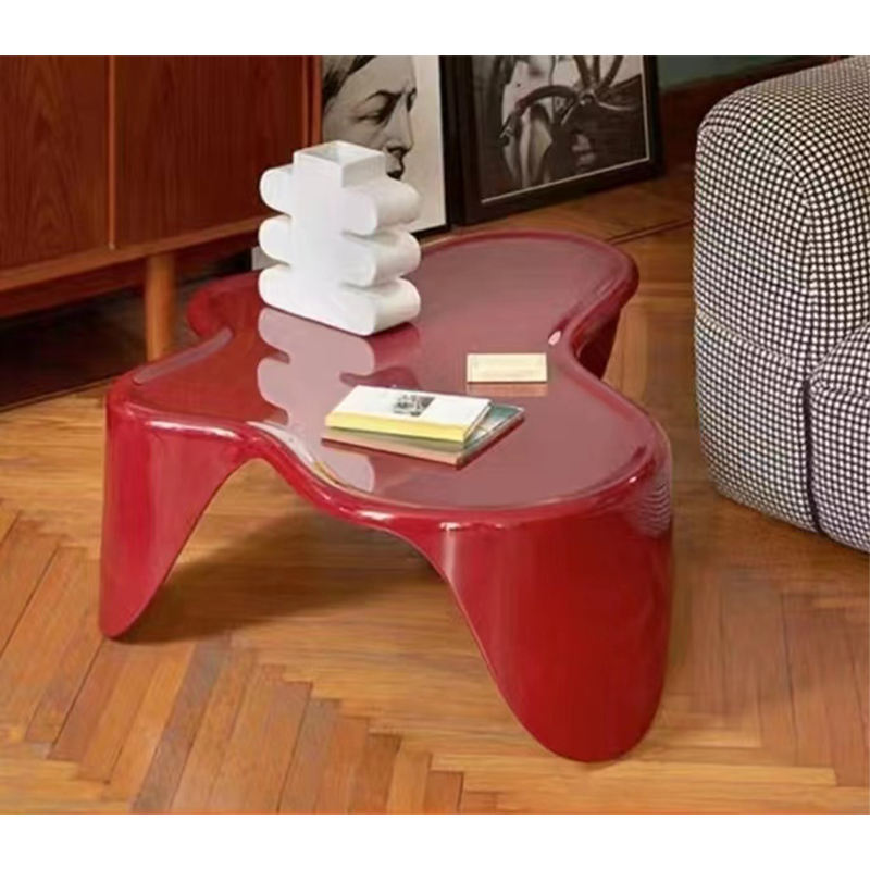 โต๊ะกาแฟทรงโค้งสไตล์วินเทจโมเดิร์นสีแดง โต๊ะน้ำชาทรงกลม โต๊ะข้างโซฟา ทำจากไฟเบอร์กลาส เหมาะสำหรับห้องนั่งเล่น ใช้ได้ทั้งภายในและภายนอกอาคาร