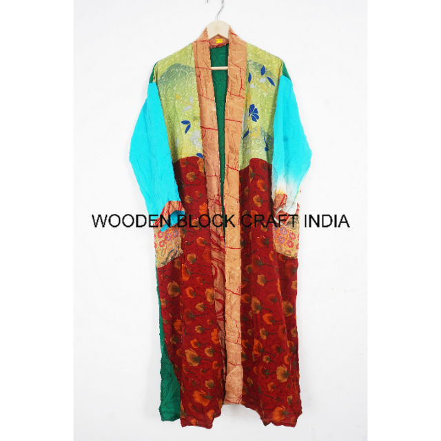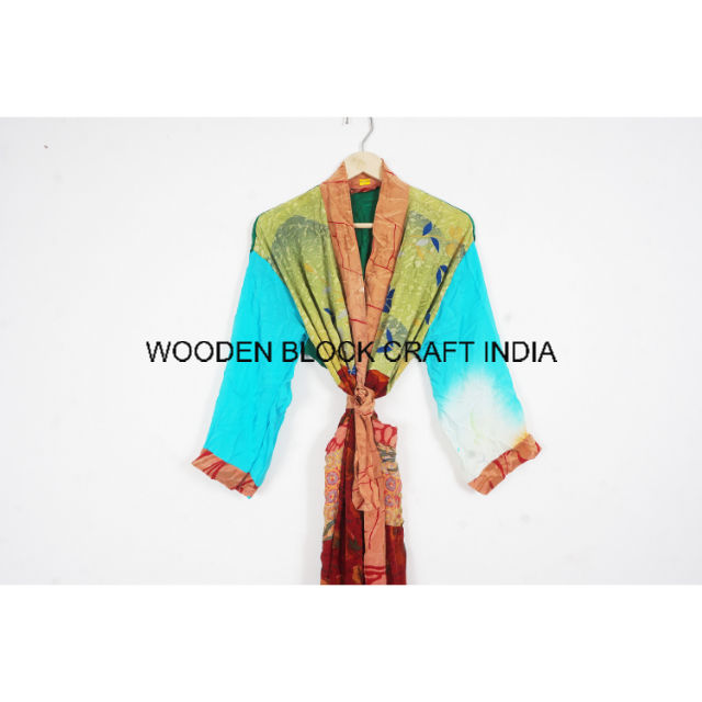 ชุดกิโมโนผ้าไหมวินเทจสุดหรู แต่งลายปะติด ชุดนอนยาวสำหรับฤดูร้อน ชุดชายหาดพร้อมเชือกผูก ผลิตจากผ้าไหม สำหรับผู้หญิง