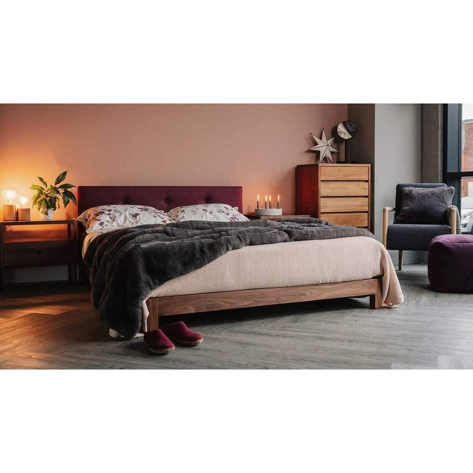 โครงเตียงวอลนัทหรูหราพร้อมหัวเตียงผ้ากำมะหยี่