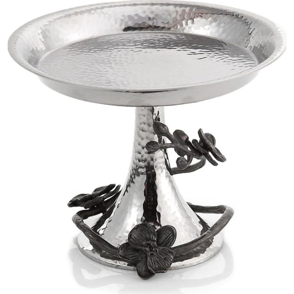 ถาดเสิร์ฟขนมหวานงานแต่งงานสุดหรู ทำด้วยมือจากอะลูมิเนียมลายตอก พร้อมลายดอกกล้วยไม้สีดำ ราคาประหยัด