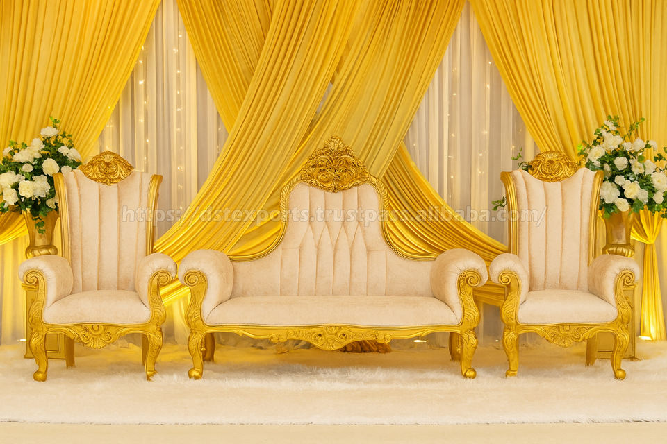 ชุดโซฟาต้อนรับงานแต่งงานหรูหราเฟอร์นิเจอร์สีขาวทองหรูหราสไตล์อังกฤษแบบดั้งเดิมเอเชียตกแต่งเวทีราคาโรงงานสหรัฐอเมริกา