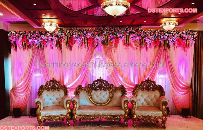 Elegant Wedding Silver Carved Throne Sofa Set