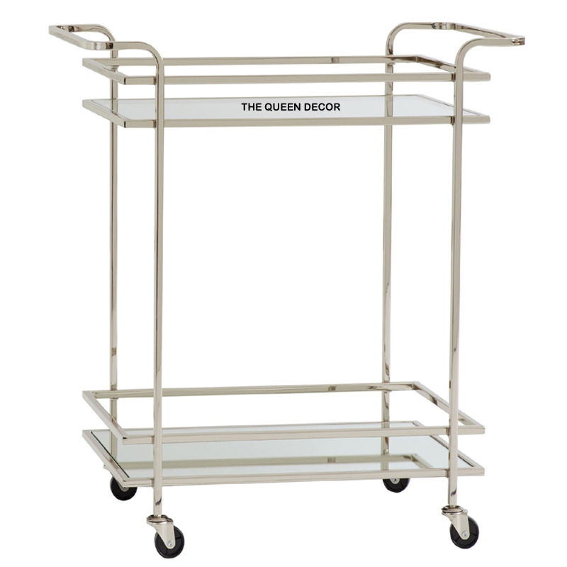 รถเข็นล้อเลื่อนหรูหราเก็บของใช้ในครัวเรือนโครงโลหะสแตนเลสสีทองมันวาวและกระจกใสด้านบน