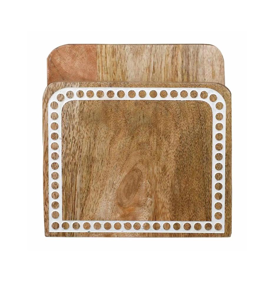 ที่ใส่ผ้าเช็ดปากทำจากไม้ดีไซน์ลูกปัดสีขาวสง่างามที่วางผ้าเช็ดปากบนโต๊ะสำหรับบ้านร้านอาหารงานแต่งงาน