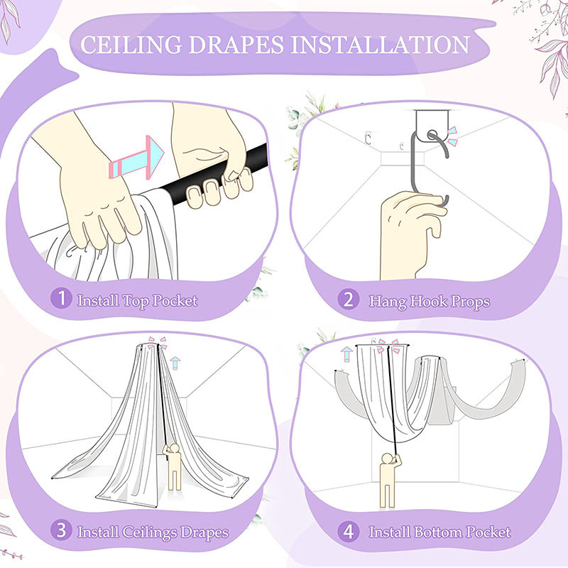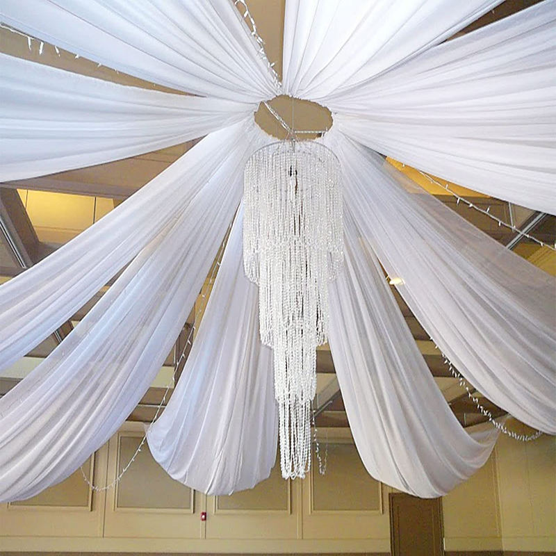 ผ้าม่านกันแสงโพลีเอสเตอร์แบบแขวนประดับเพดานสำหรับงานปาร์ตี้ที่หรูหราสีงานแต่งงานแบบ100%