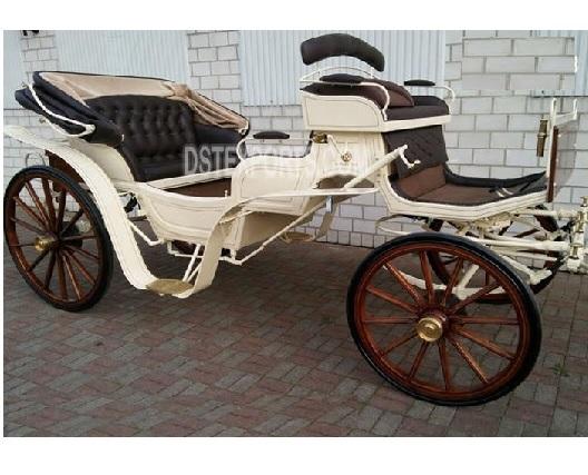 รถม้าแบบเปิดประทุนสีขาวหรูหรา รถม้าแบบคลาสสิกที่ขับเคลื่อนด้วยม้า รถม้าแบบวิคตอเรียนสีขาวที่ขับเคลื่อนด้วยม้า