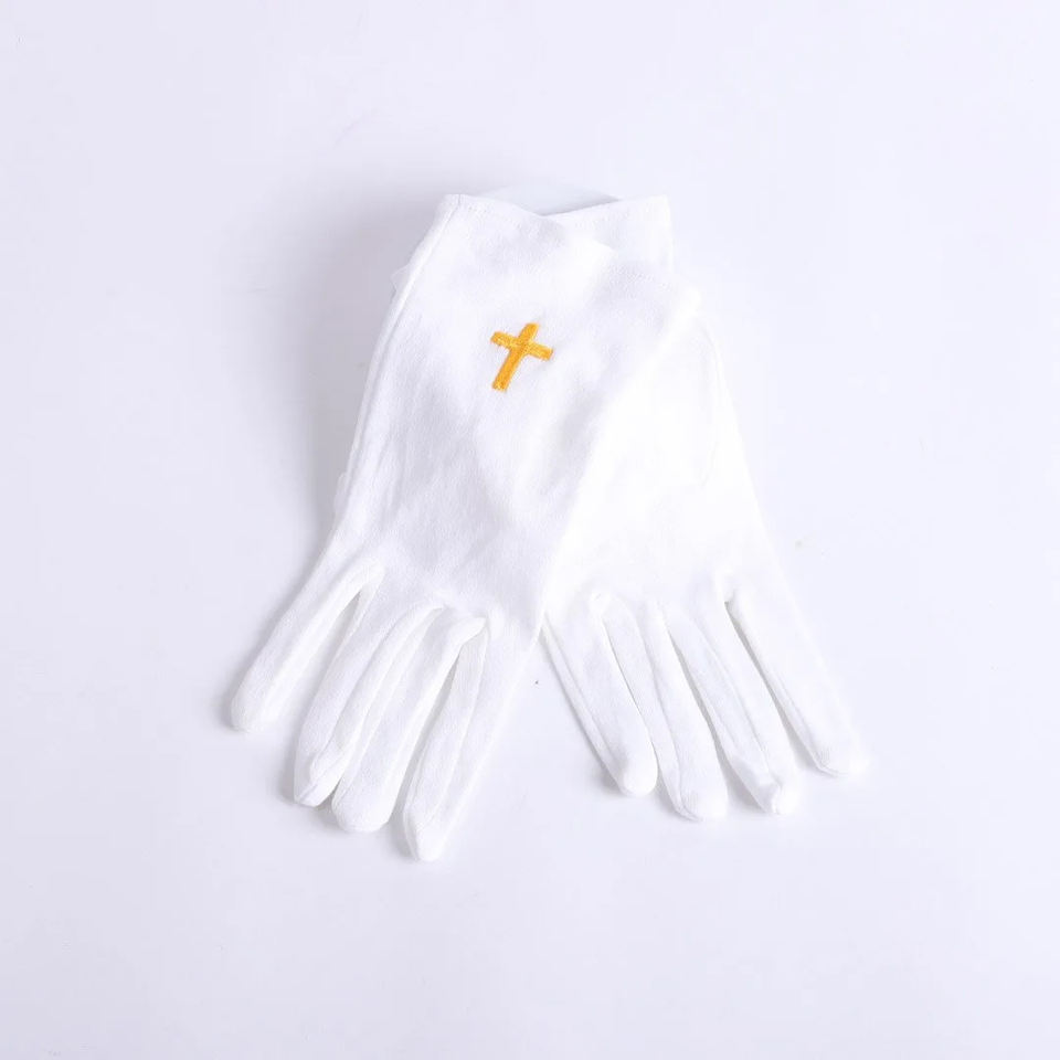 ถุงมือผ้าฝ้ายสีขาวสุดหรูสำหรับพิธีกรรมในสถานพักพิง งานพิธีการทางสมาคม และเครื่องประดับพิธีกรรม ให้ความรู้สึกนุ่มสบายมือ