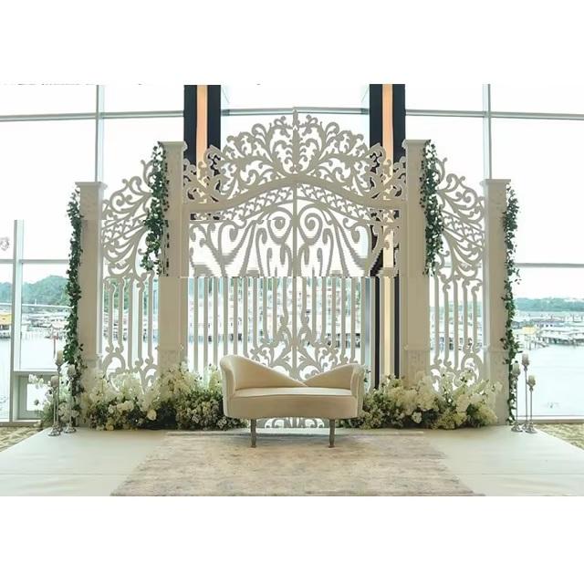 กรอบประตูไฟเบอร์สีขาวหรูหราสำหรับเวทีแต่งงานกรอบประตูพื้นหลัง FRP สำหรับเวทีแต่งงานแผงกรอบประตู
