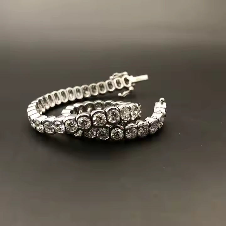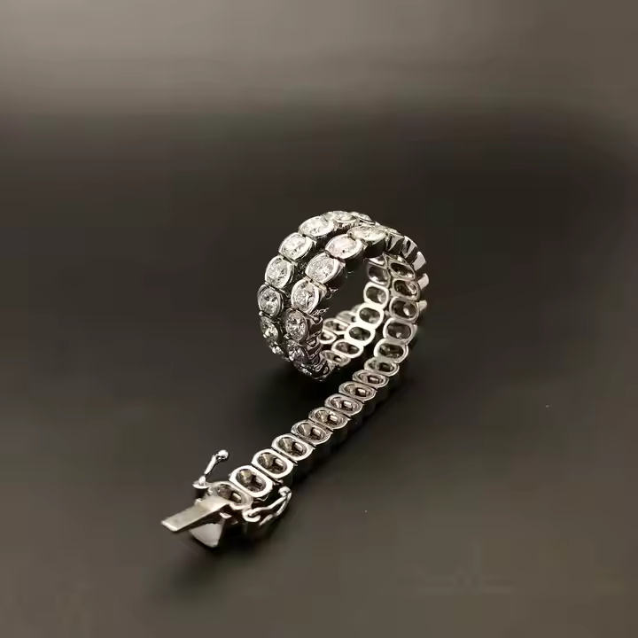 สร้อยข้อมือเพชรสีเงินสีขาวสง่างามสำหรับผู้หญิงสร้อยข้อมือเทนนิสเพชรโมอิสสำหรับเครื่องประดับคลาสสิกของขวัญพิเศษในชีวิตประจำวัน