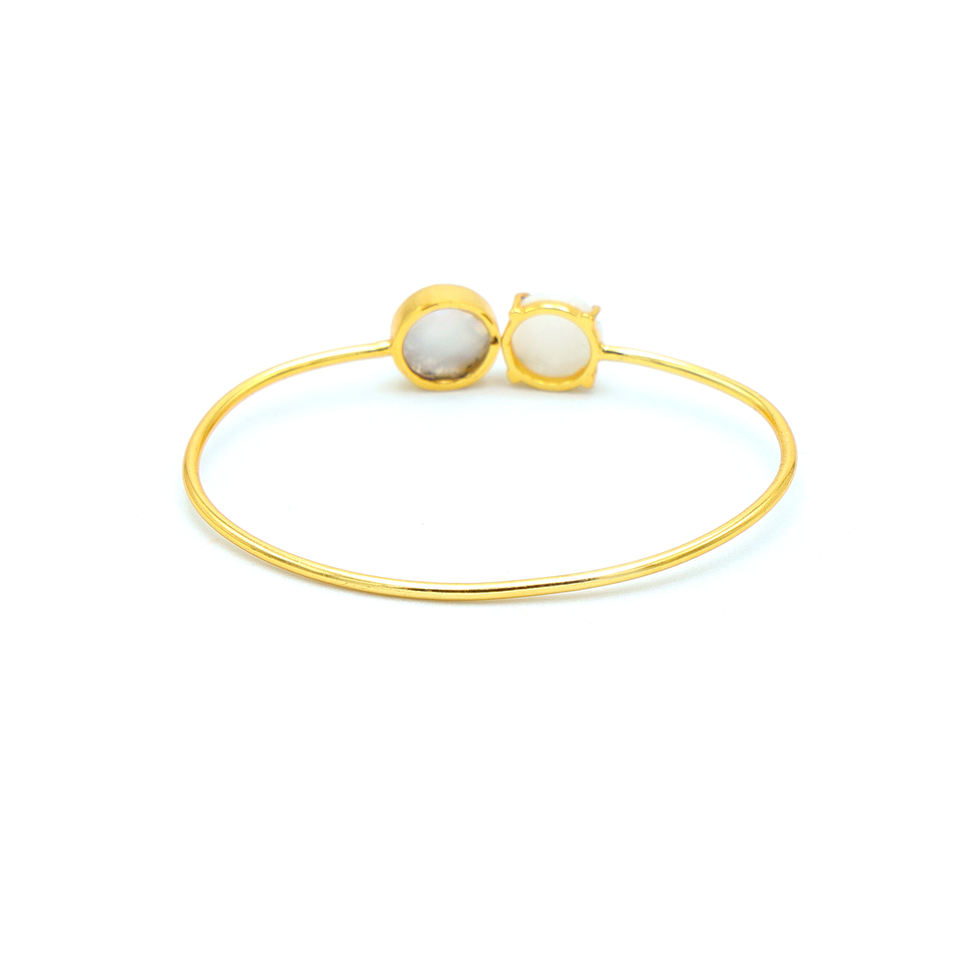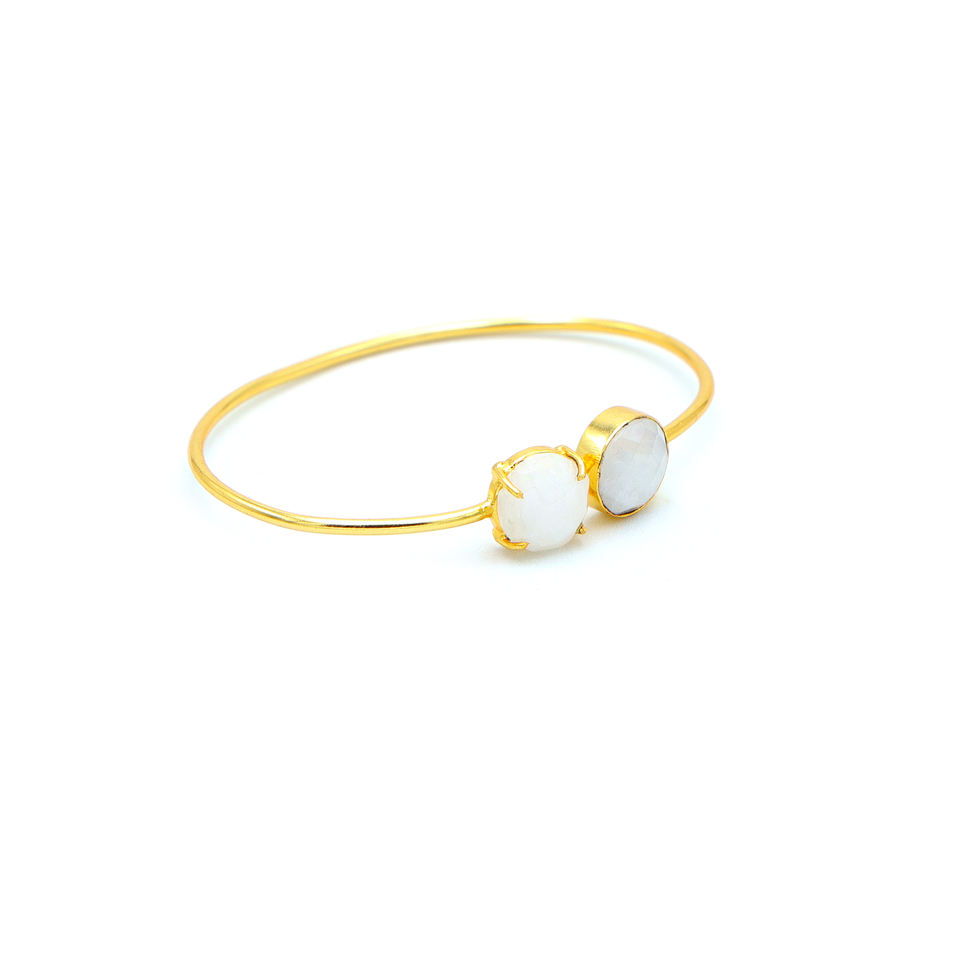 สร้อยข้อมือชุบทองสีขาวสง่างามสีรุ้งมูนสโตนสำหรับผู้หญิงเครื่องประดับทองเหลืองอินเทรนด์สำหรับงานแต่งงาน