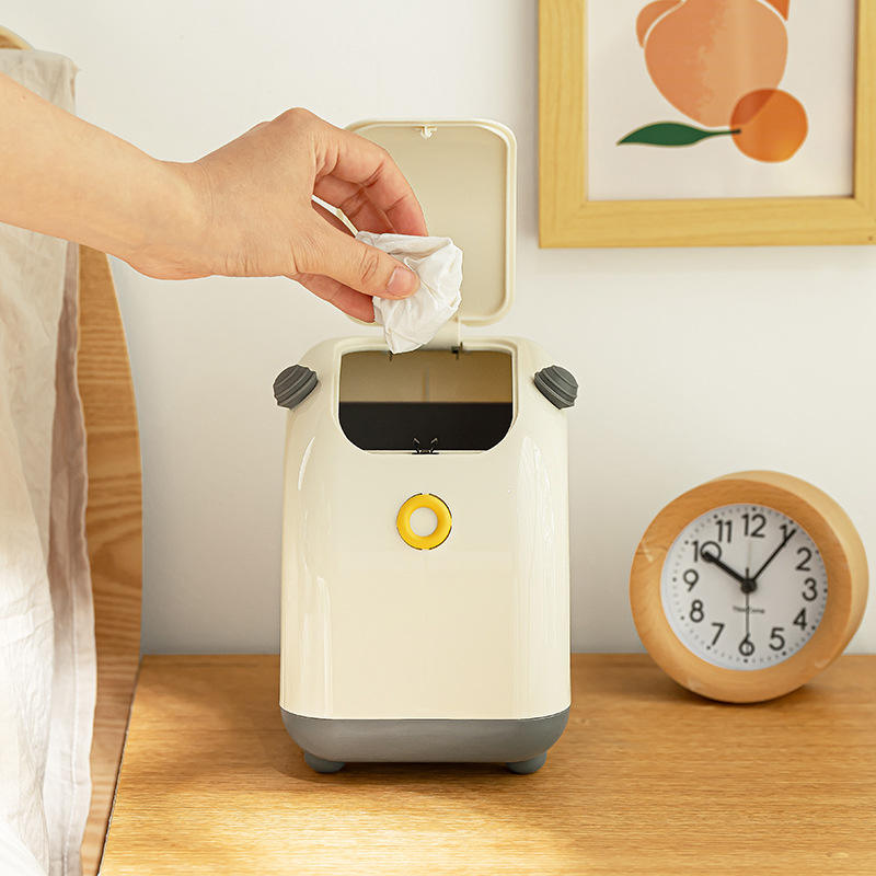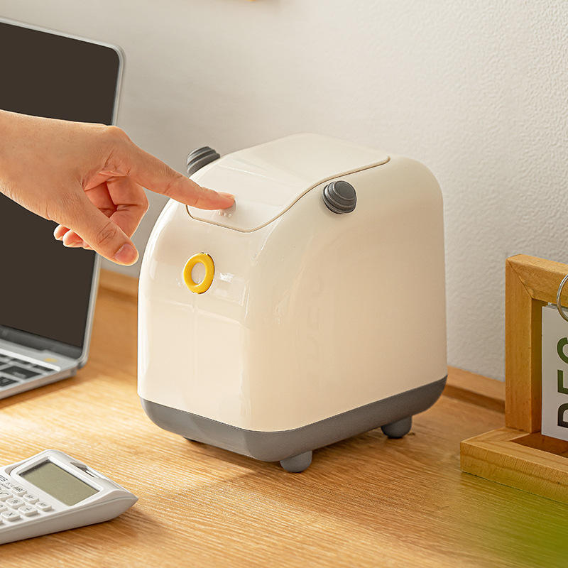 ถังขยะตั้งโต๊ะขนาดเล็กสีขาวหรูหราพร้อมฝาปิดแบบพลิกสำหรับใช้ในบ้าน สำนักงาน โต๊ะทำงาน ถังขยะทรงสี่เหลี่ยมสำหรับใช้ภายในอาคาร