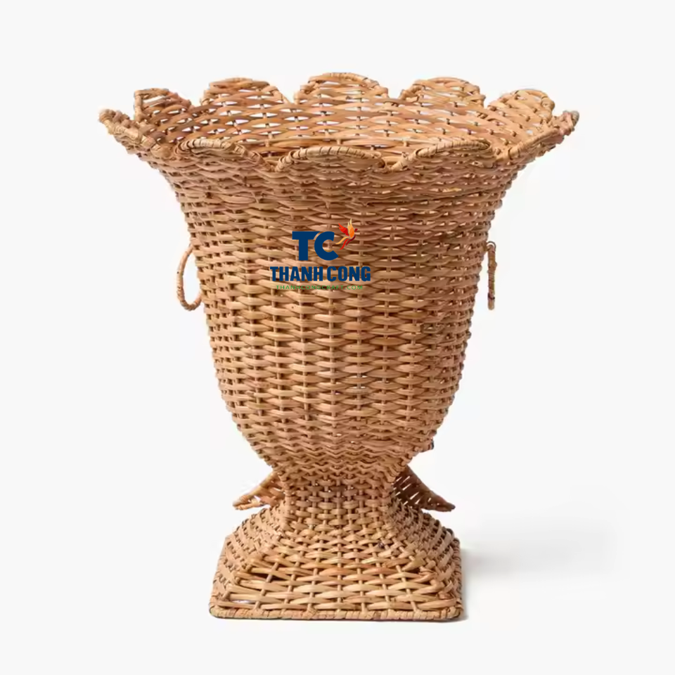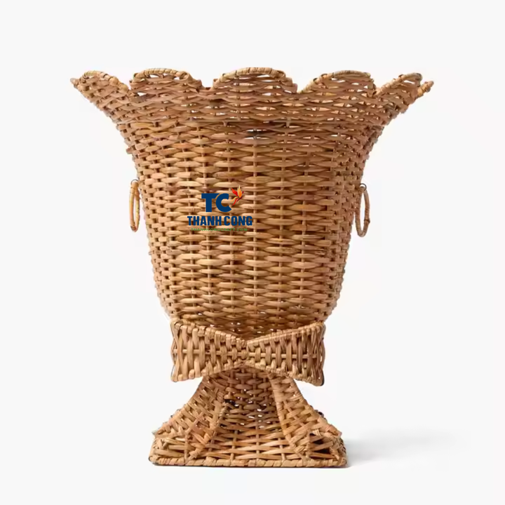 แจกันหวายแบบมีฐานทำด้วยมือทำจากหวายที่ทำด้วยมือทำมือจากผู้จำหน่ายจากเวียดนามสำหรับแจกันบนโต๊ะทำจากหวายดอกไม้แห้งแบบมินิมอลลิสต์