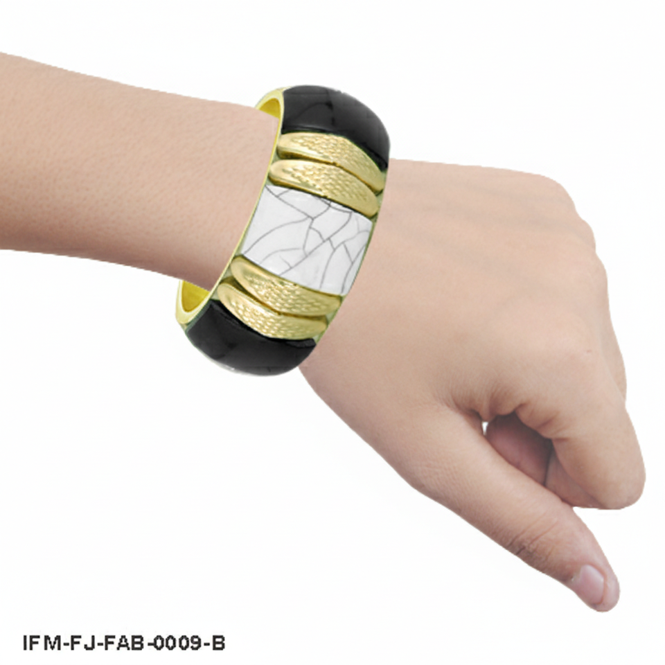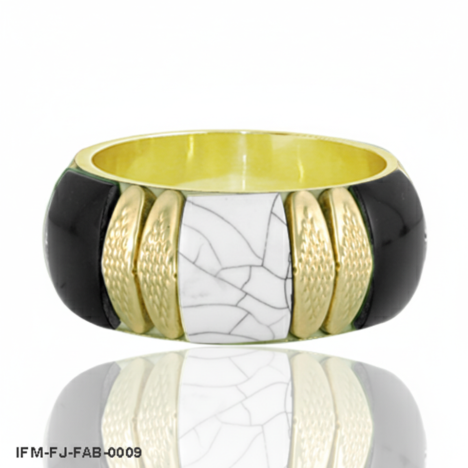 กำไลข้อมือแบบหนา ดีไซน์หรูหรา ชุบทอง ประดับเรซิ่นสีดำและลายหินอ่อนสีขาวแตก สำหรับผู้หญิง