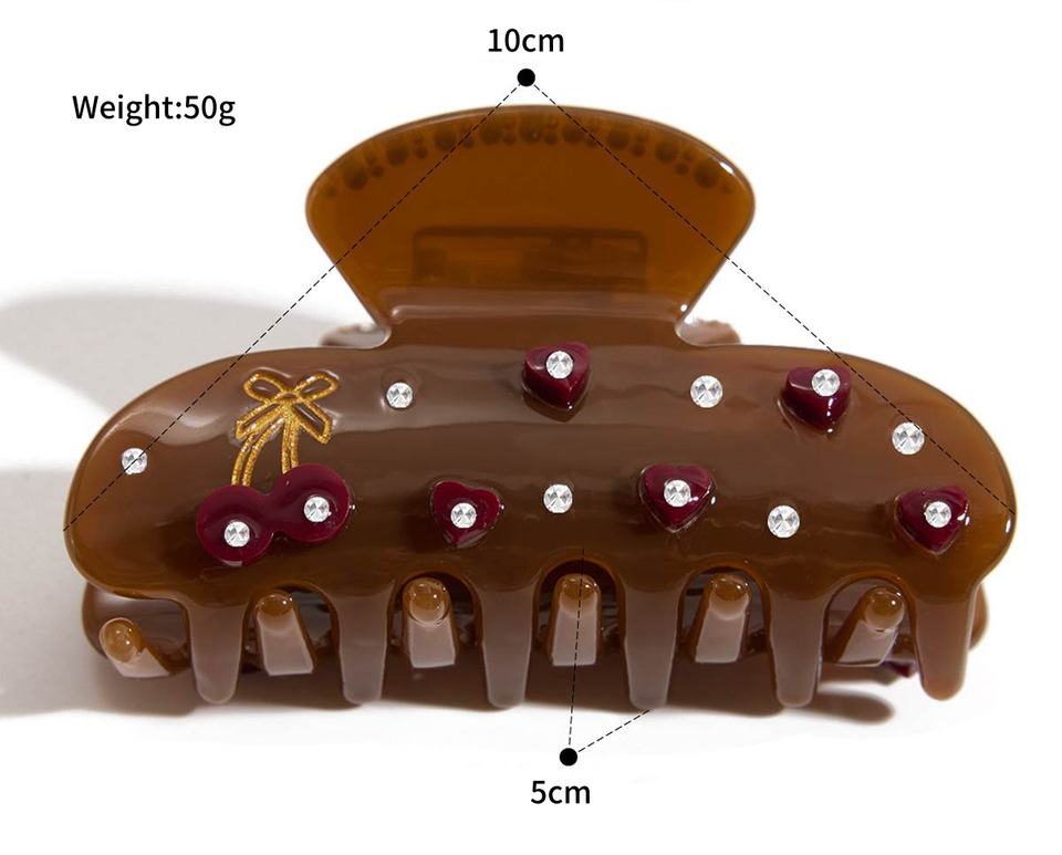 กิ๊บติดผมรูปหัวใจแฟชั่นสีแดงไวน์สุดหรู ทำจากอะซิเตทและพลาสติก ประดับด้วยคริสตัลสีขาวและคลิปหนีบผมสีน้ำตาลสำหรับผู้หญิง