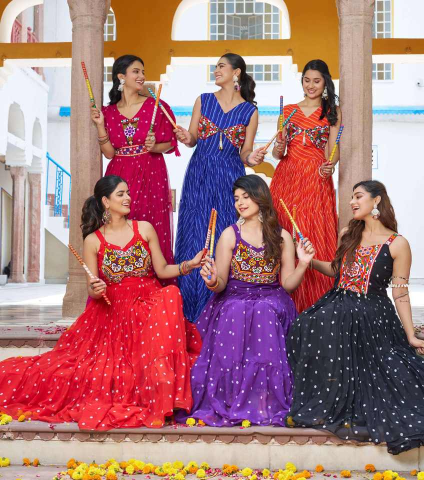 ชุดเดรสผู้หญิงสไตล์หรูหราสำหรับใส่ในชีวิตประจำวัน ประดับด้วยงานปักแบบกามาธีและลายพิมพ์บันดานี เหมาะสำหรับใส่ลำลองในเทศกาล งานเฉลิมฉลอง ที่บ้าน และในชีวิตประจำวัน สไตล์ชาติพันธุ์