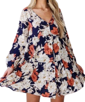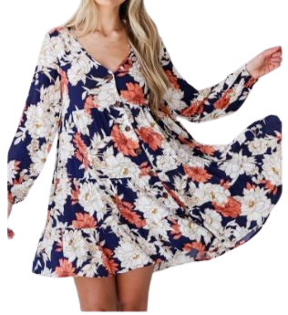 ชื่อสินค้า:ชุดเดรสลายดอกไม้สีฟ้า