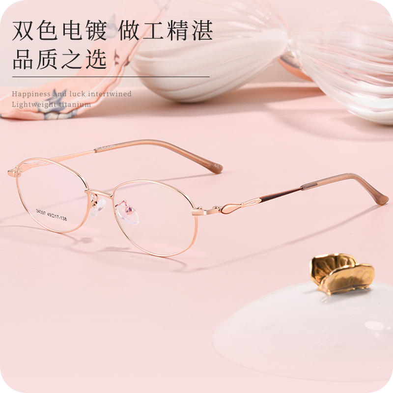 กรอบแว่นตาทรงรีสำหรับผู้หญิง ดีไซน์หรูหรา สีทอง ขอบเต็ม วัสดุอัลลอยด์ แว่นสายตา รุ่น Miss 34397 Danyang คอลเลคชั่นฤดูหนาว 2022