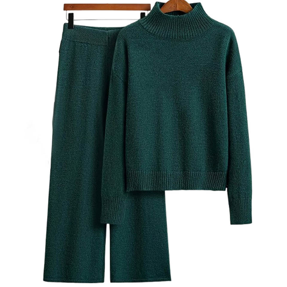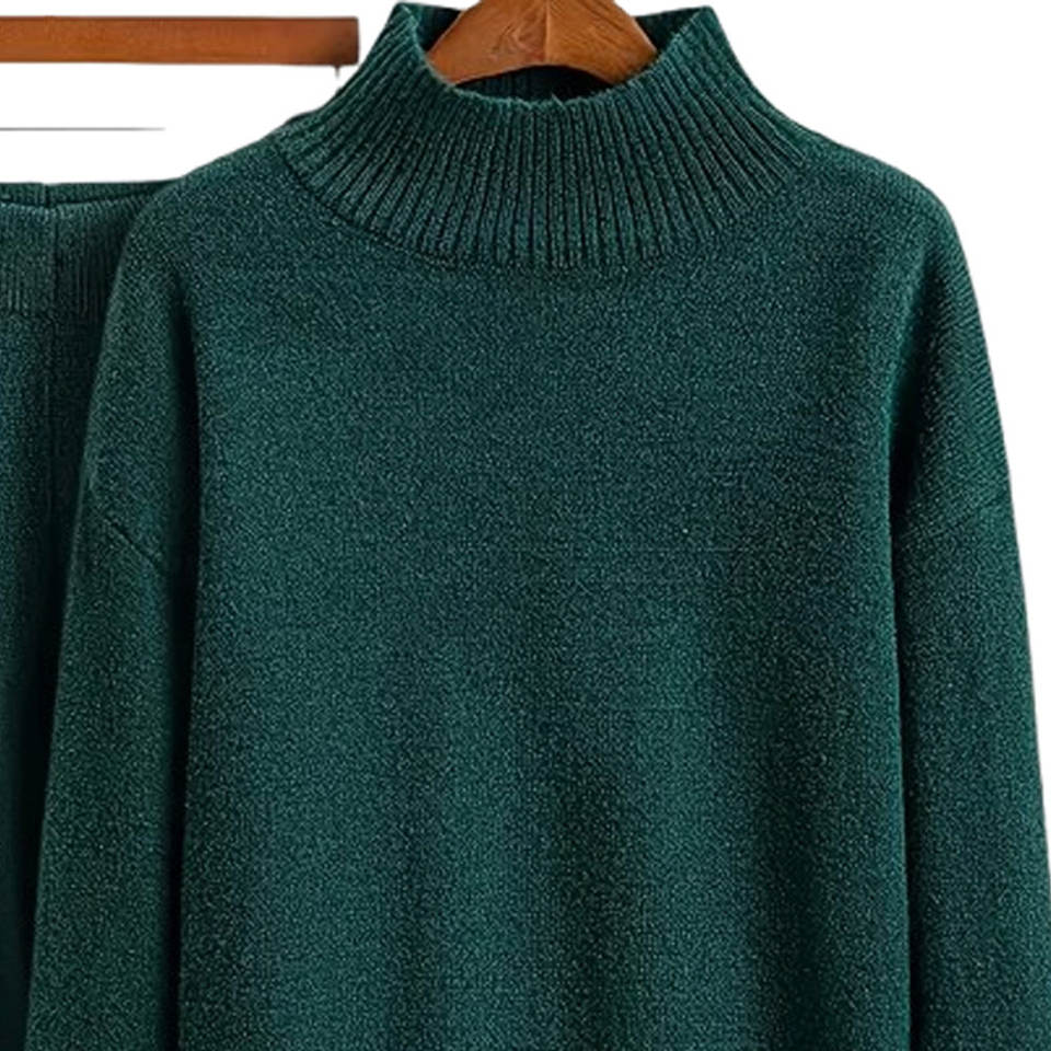 ชุดเสื้อสเวตเตอร์ถักสองชิ้นแบบสวมหัวและกระโปรงสำหรับฤดูใบไม้ร่วง