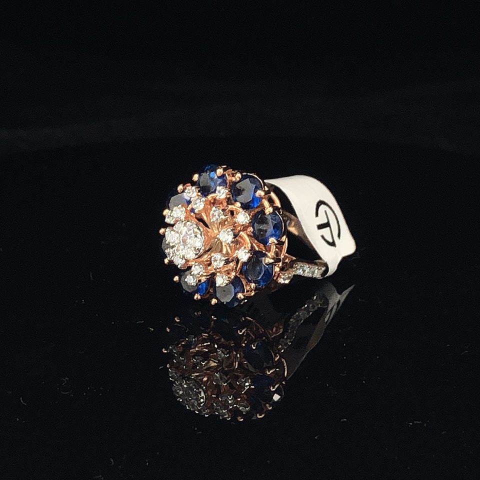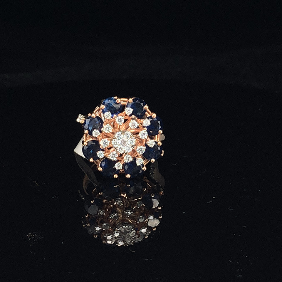 Rose Gold Design Moissanite Diamond & Sapphire Cluster Ring
