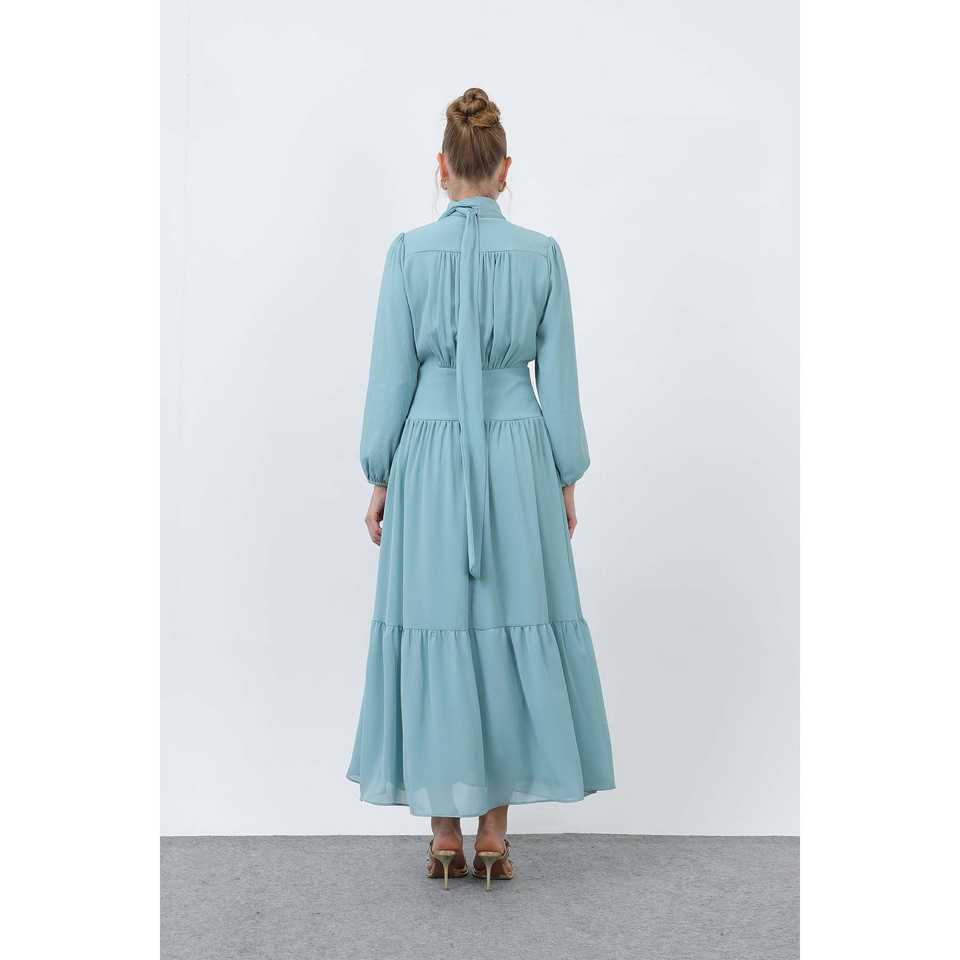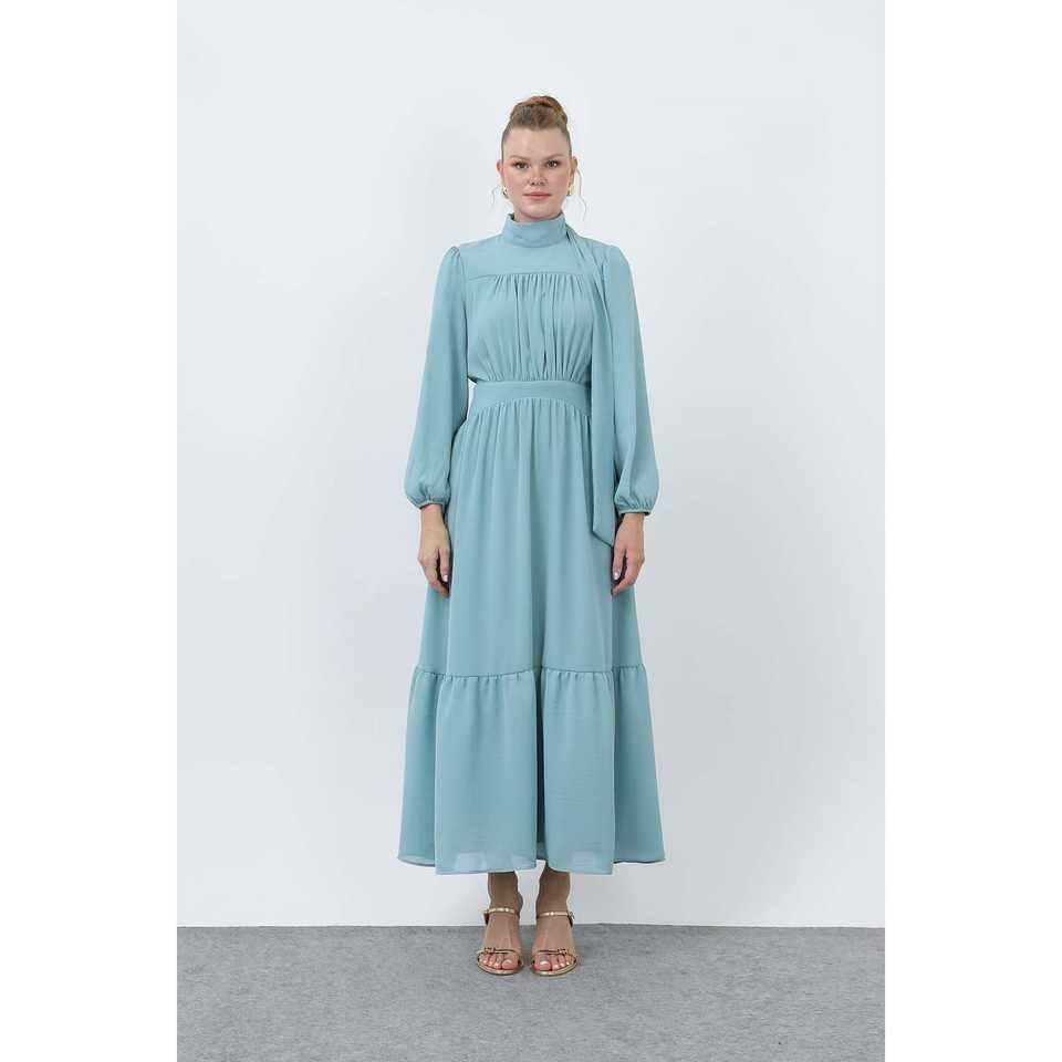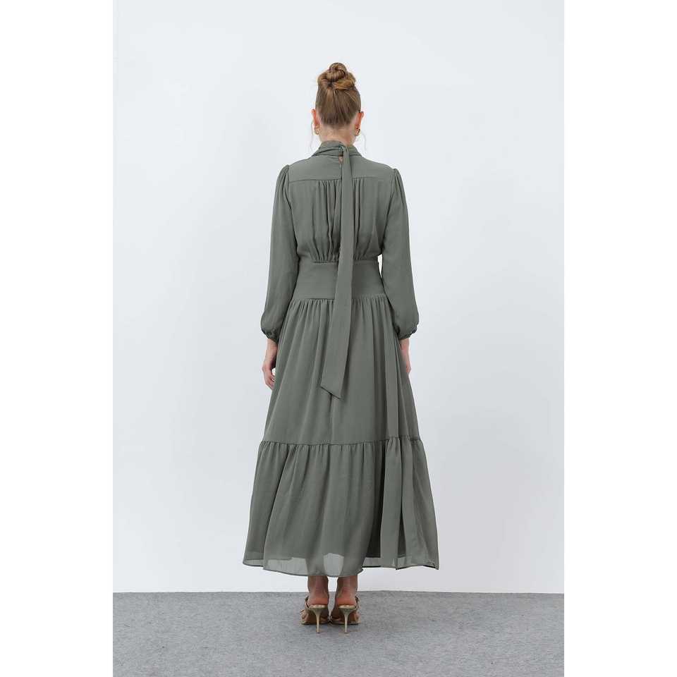 ชุดเดรสชีฟองเอวสูงทรงเอไลน์สำหรับผู้หญิง ดีไซน์หรูหรา ระบายอากาศได้ดี ผ้าจับเดรป ชุดราตรีสีดำ