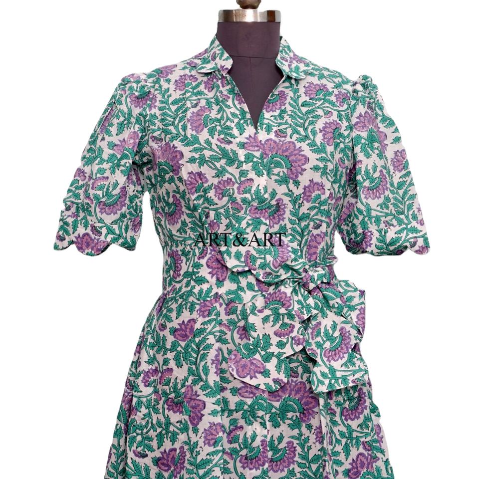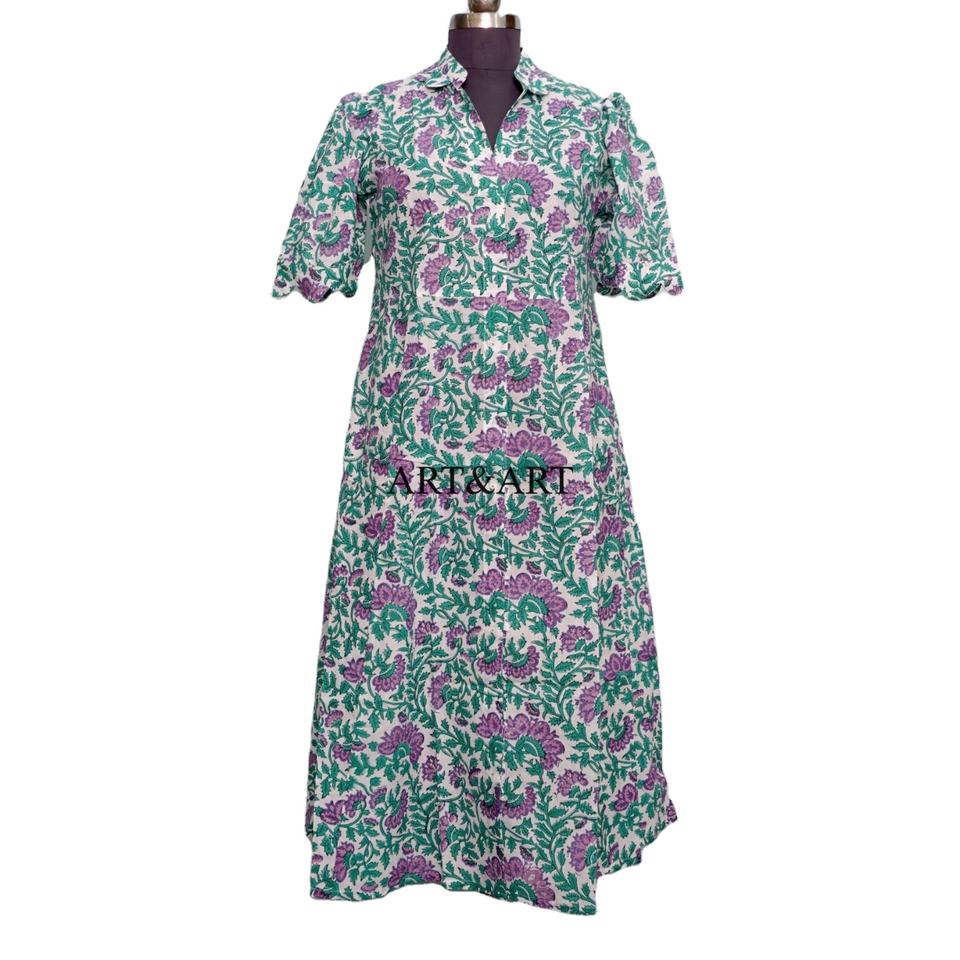 เดรสผ้าฝ้ายสไตล์โบฮีเมียนหวานๆ ลายดอกไม้ วินเทจ สำหรับผู้หญิง แขนสั้น ทรงเอไลน์ ใส่สบายๆ ซักได้ เหมาะกับฤดูร้อน