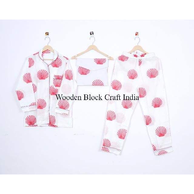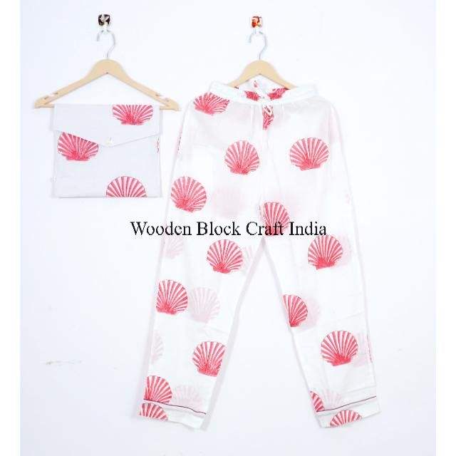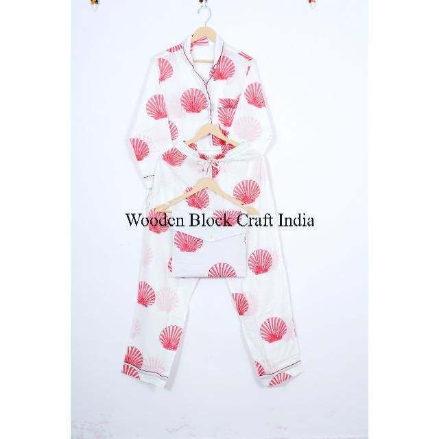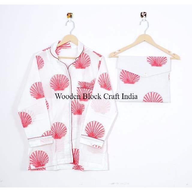 ชุดนอนผ้าฝ้ายพิมพ์ลายบล็อกด้วยมือสำหรับผู้หญิง ดีไซน์เปลือกหอย สวยงาม สวมใส่สบาย เหมาะสำหรับงานปาร์ตี้ ซักได้ ผลิตจากผ้าธรรมชาติของอินเดีย