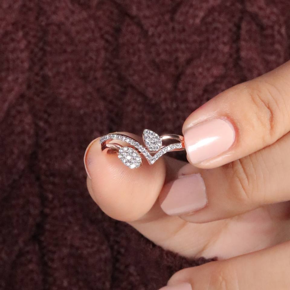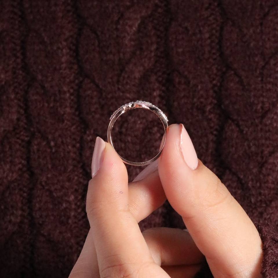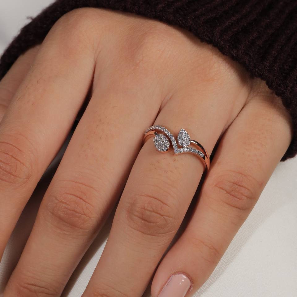 แหวนเพชรสีทองสำหรับผู้หญิงที่สง่างามพร้อมการตั้งค่าการฝังแบบปรับได้ทันสมัยชุบโรสโกลด์และโรเดียม