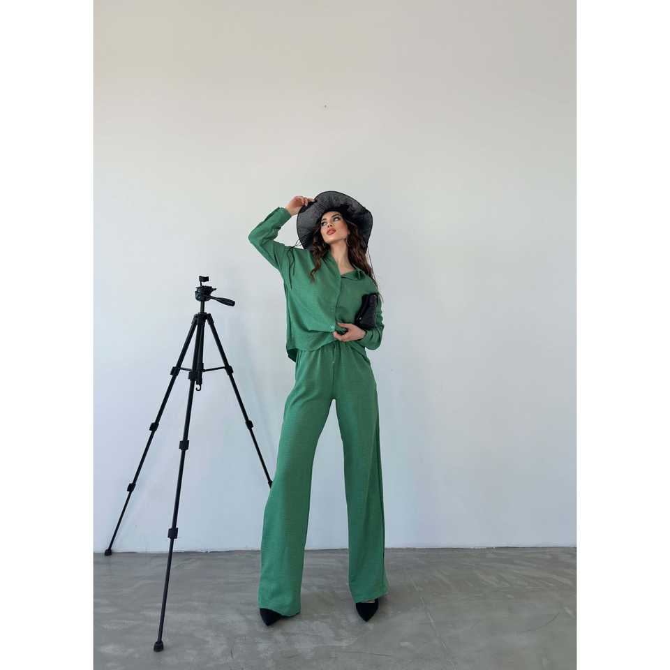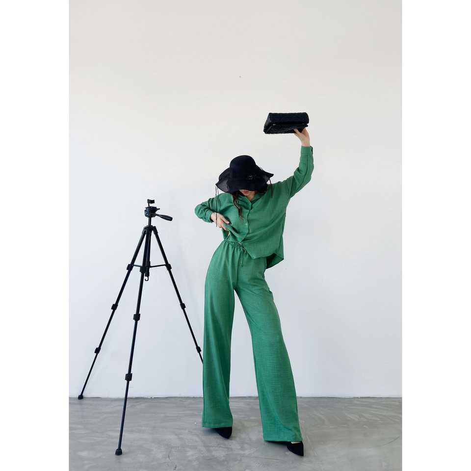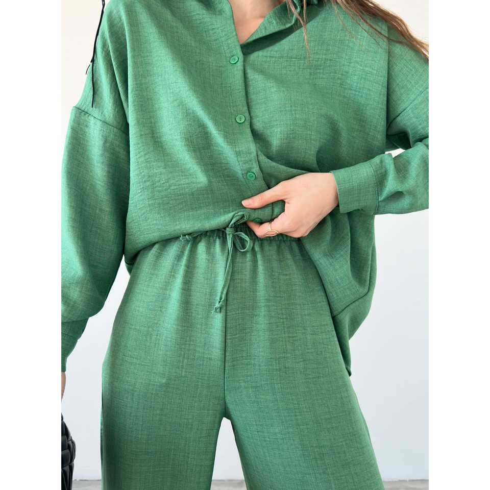 ชุดสูทผู้หญิง 2 ชิ้น เสื้อเชิ้ตผ้าฝ้ายสีเขียวทรงออกซ์ฟอร์ดและกางเกงขายาวทรงกว้าง ระบายอากาศได้ดี เหมาะสำหรับงานทางการ