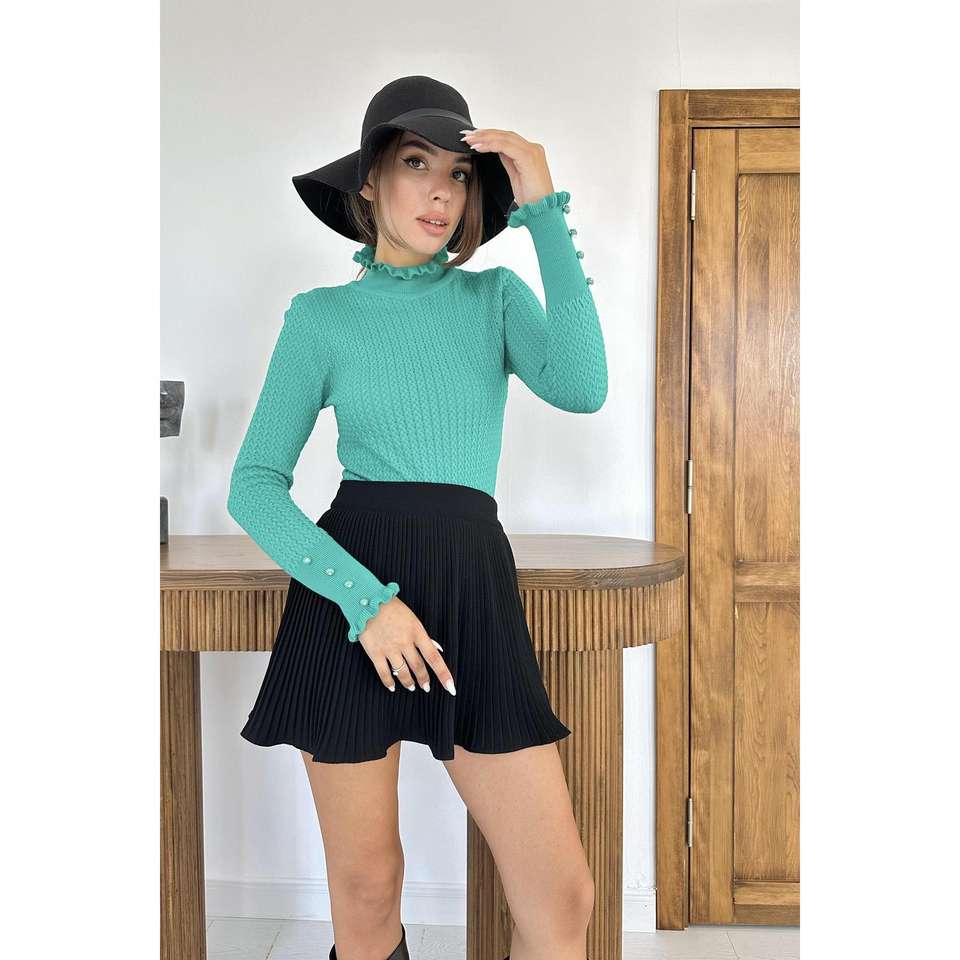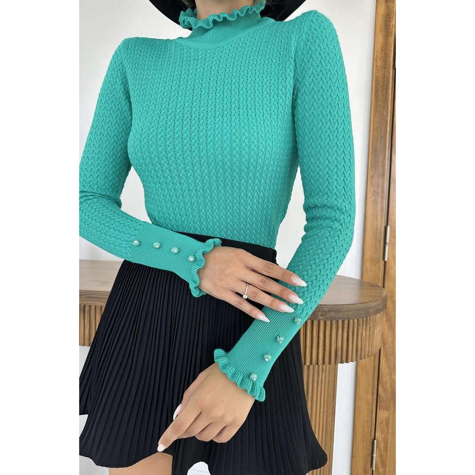 เสื้อสเวตเตอร์ไหมพรมคอเต่าสีเขียวสำหรับผู้หญิง ดีไซน์หรูหรา แขนยาว ป้องกันขนร่วง 14 กรัม
