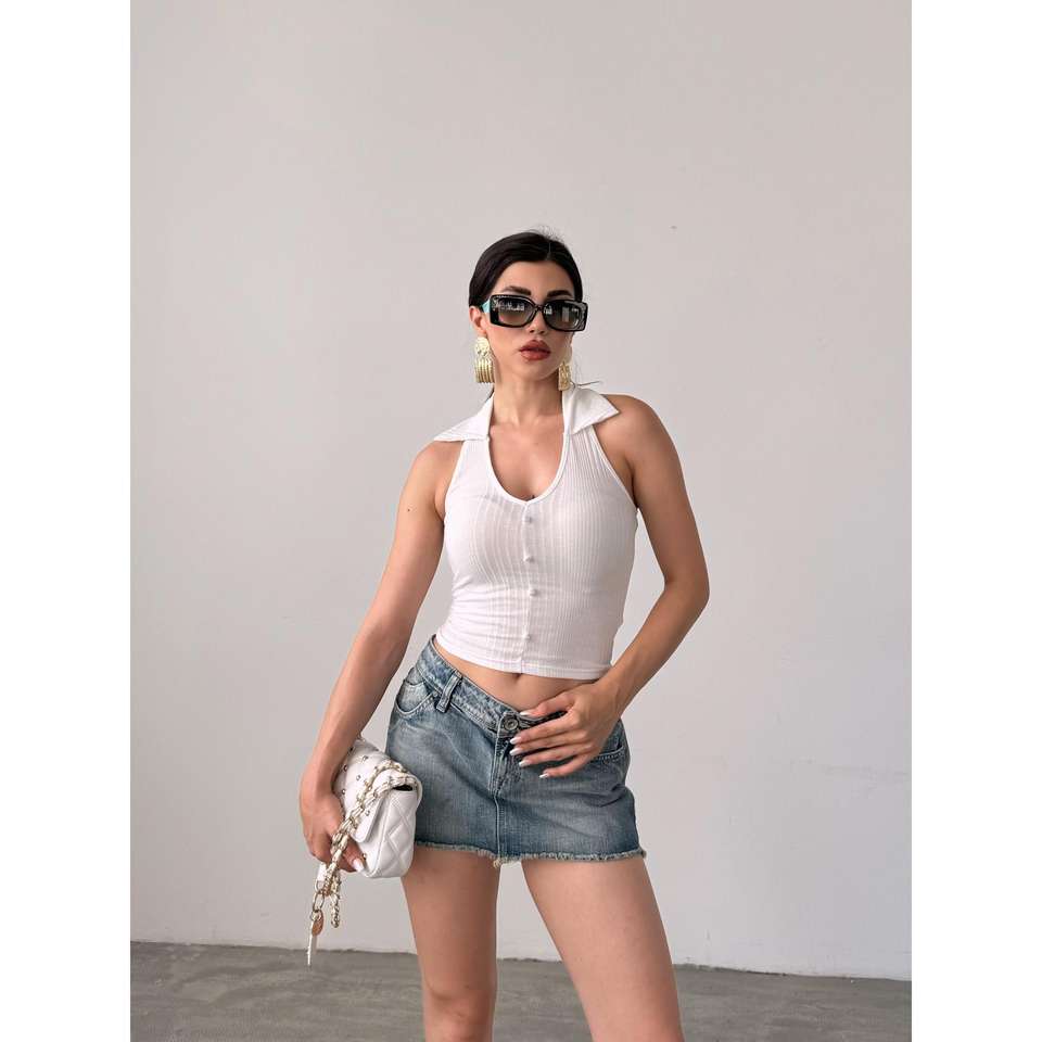เสื้อเชิ้ตผู้หญิงถักนิตติ้งแบบมีปก ดีไซน์ติดกระดุมด้านหน้า สวมใส่สบายๆ ในชีวิตประจำวัน สีขาว