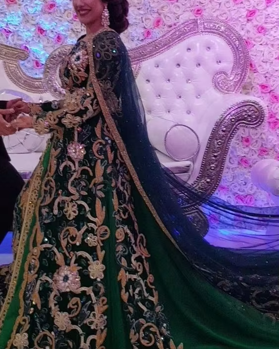 Lehenga choli ผู้หญิงที่สง่างามกับ zardozi หนักเย็บปักถักร้อยยาวพื้นม่านยาวสำหรับงานแต่งงาน-atibya AS Acetate