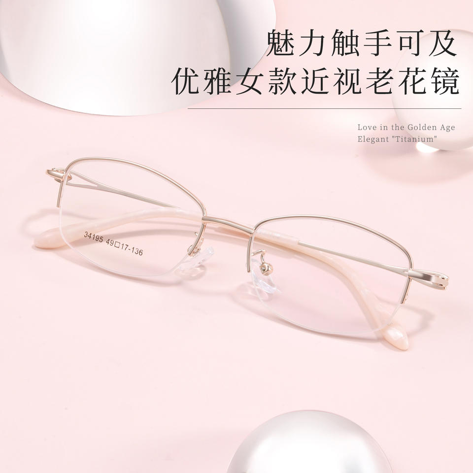 กรอบแว่นตาทรงวงรีสำหรับผู้หญิง รุ่น 34195 เลนส์เรซิ่นเต็มกรอบ ป้องกันรังสียูวี ผลิตที่ตานหยาง