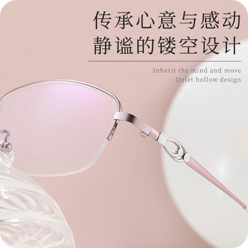 กรอบแว่นตาทรงวงรีสำหรับผู้หญิง ดีไซน์หรูหรา เลนส์เรซิ่นกึ่งไร้กรอบ ป้องกันแสงสะท้อน ผลิตที่ตานหยาง รุ่น 34404