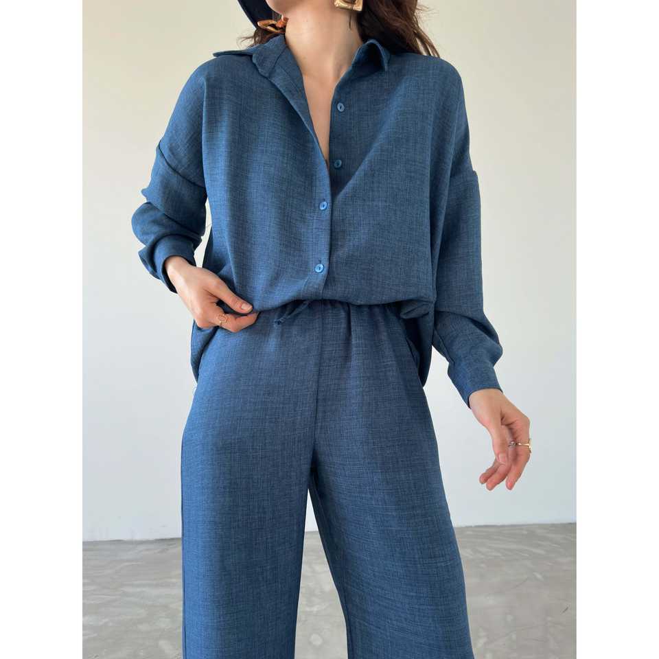 ชุดเซ็ตเสื้อเชิ้ตอ็อกซ์ฟอร์ดและกางเกงขายาวสำหรับผู้หญิง ดีไซน์หรูหรา แขนยาว สวมใส่สบาย ระบายอากาศได้ดี เหมาะกับทุกฤดูกาล