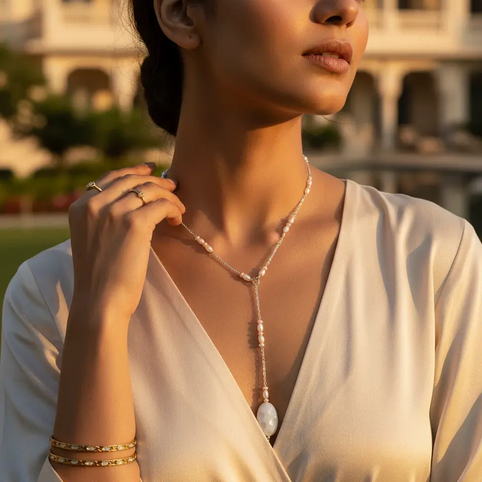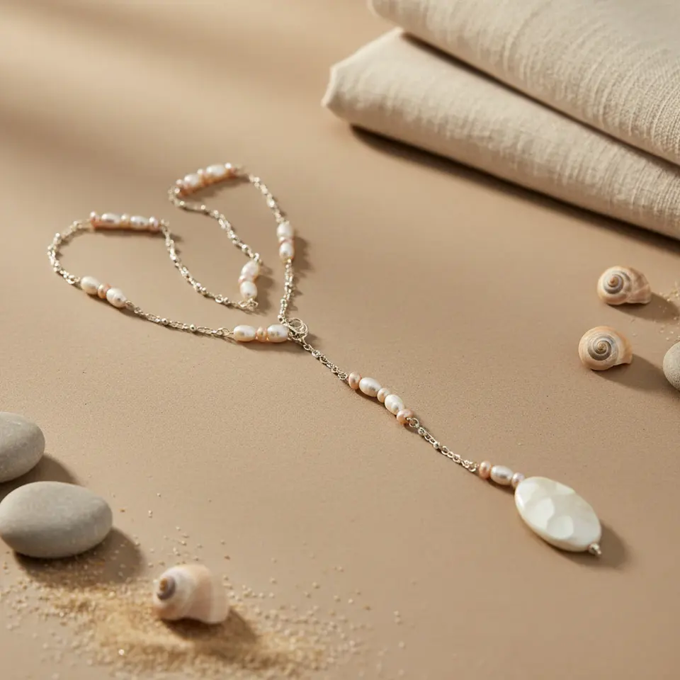 สร้อยคอไข่มุกทรงยาวสำหรับผู้หญิง ดีไซน์หรูหรา สีเงิน ผลิตภัณฑ์เครื่องประดับสุดสง่างาม