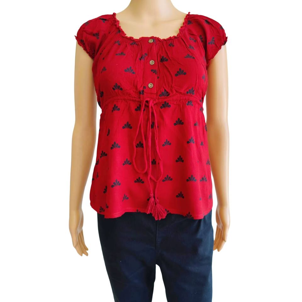 เสื้อเบลาส์ผู้หญิงแขนสั้นผ้าเรยอนสไตล์วินเทจ ดีไซน์หรูหรา แฟชั่นลำลองสำหรับใส่เที่ยวข้างนอก เสื้อทอแบบเป็นมิตรกับสิ่งแวดล้อม เหมาะสำหรับฤดูใบไม้ผลิ ฤดูใบไม้ร่วง และฤดูร้อน ติดกระดุม