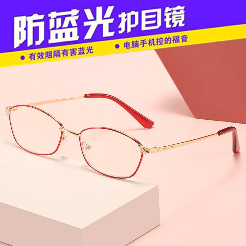 แว่นอ่านหนังสือสำหรับผู้หญิงที่สง่างาม กรอบโลหะสีแดง ป้องกันแสงสีฟ้า 0 400 องศา พร้อมส่งตามใบสั่งแพทย์