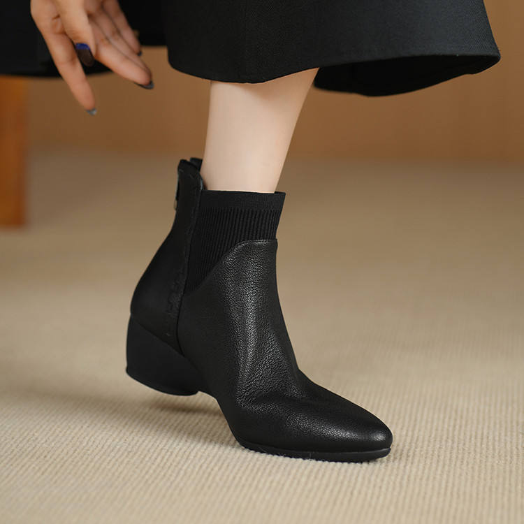รองเท้าบูททรงยาวสไตล์เรโทรสำหรับผู้หญิง ดีไซน์หรูหรา ทำจากหนังแท้ งานแฮนด์เมด พื้นรองเท้ากันลื่น กันน้ำ ทนทาน สีพื้น หัวแหลม
