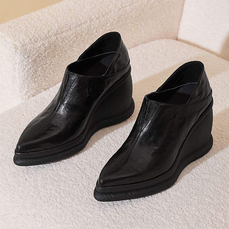 รองเท้าบูททรงยาวสไตล์เรโทรสำหรับผู้หญิง ดีไซน์หรูหรา ทำด้วยมือจากหนังแท้ กันน้ำ ทนทาน กันลื่น สีพื้น ปลายแหลม สวมใส่สบาย